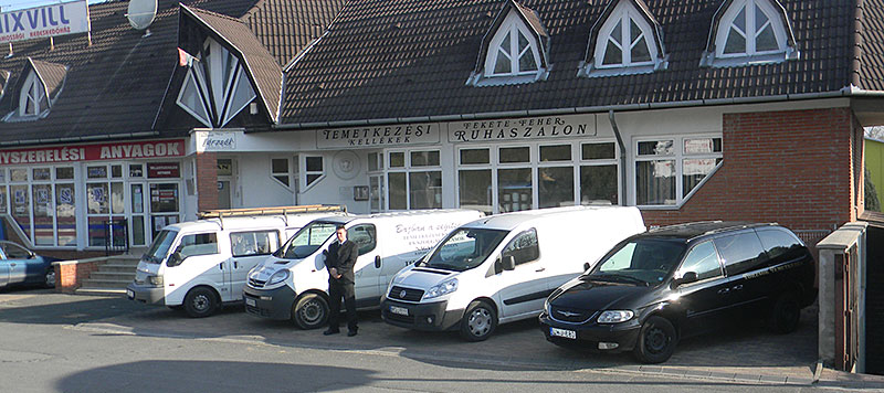 Kaposvár, Dombóvári u. 1. szám alatti 800m2-es üzletházunkban levő temetkezési irodánk maradéktalanul biztosítja a teljes körű temetkezési szolgáltatás megrendelését. Bemutató termünkben általában 48 féle koporsó, 30 fajta szemfedél, és 25 féle urna található, így a cégünket felkereső hozzátartozó minden árfekvésben tud választani a kellékekből. Böhönyén, Kéthelyen lévő lerakatainkban is megtalálhatók a temetés kellékei, kollégáink készségesen segítenek a temetés lebonyolításában a temettető hozzátartozóknak. Korrekt kapcsolatot tartunk fenn az egyházakkal, valamint társadalmi temetések lebonyolításához szónokot alkalmazunk.